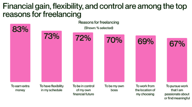 Increased earning potential is on the list, as seen below. We are operating in a ‘freelancers market’; they have the power as companies scramble to cover skills gaps.